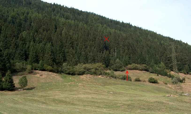bosco nel quale si trova il Forte Velon (5.9.2003). La freccia marca il